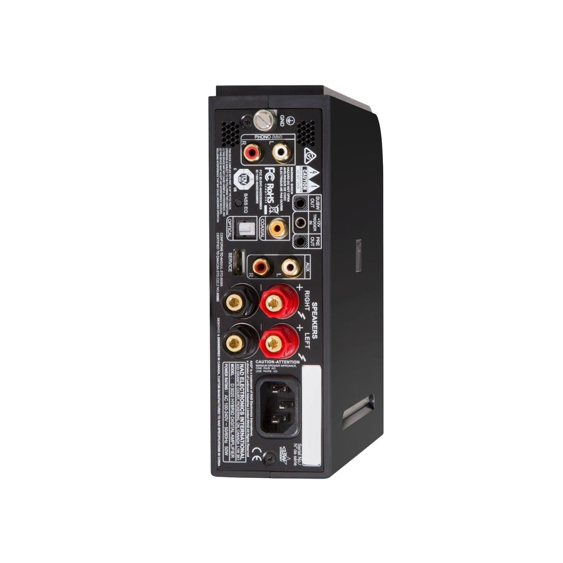 The NAD D 3020 V2 Hybrid Digital DAC Amplifier is a compact integrated amp that delivers high-fidelity sound for desktop, TV, and small-room systems. With 30 watts per channel, NAD PowerDrive™, and a 24-bit/192kHz DAC, it brings clarity, dynamics, and detail to digital playback. Stream easily via Bluetooth with aptX and connect TVs and components through optical and coaxial inputs, plus an analog line input for legacy gear. A built-in MM phono stage and pre-out for subwoofer expansion make it a flexible, modern hub for music and vinyl lovers.