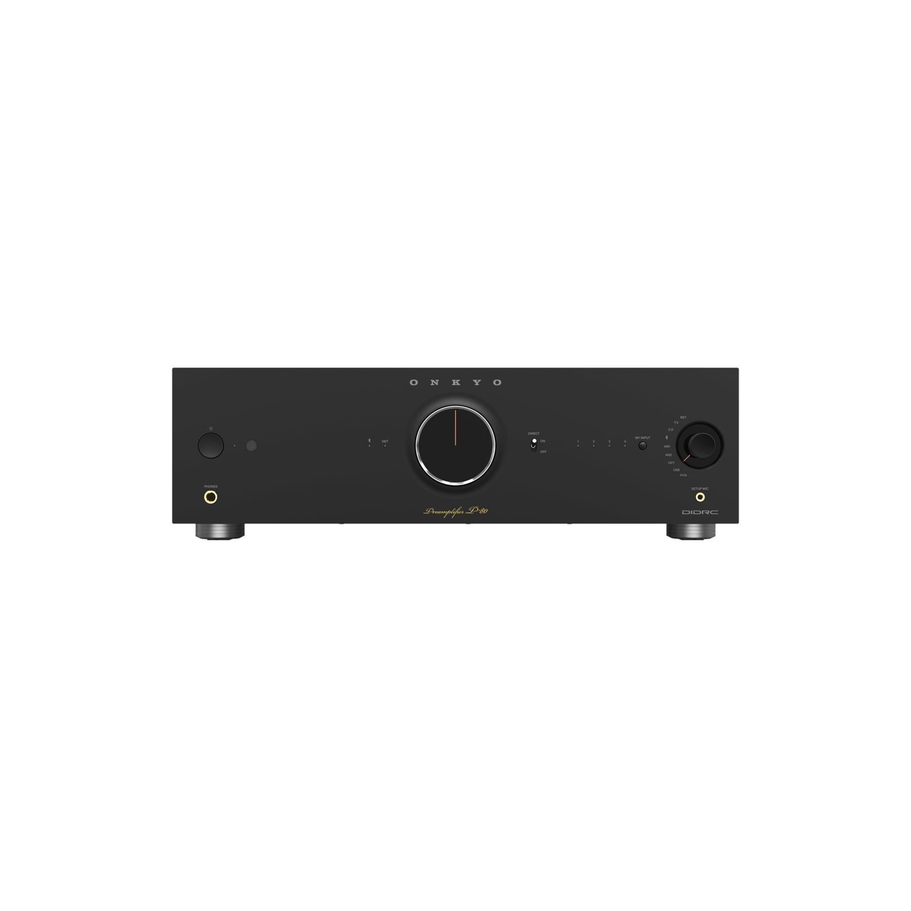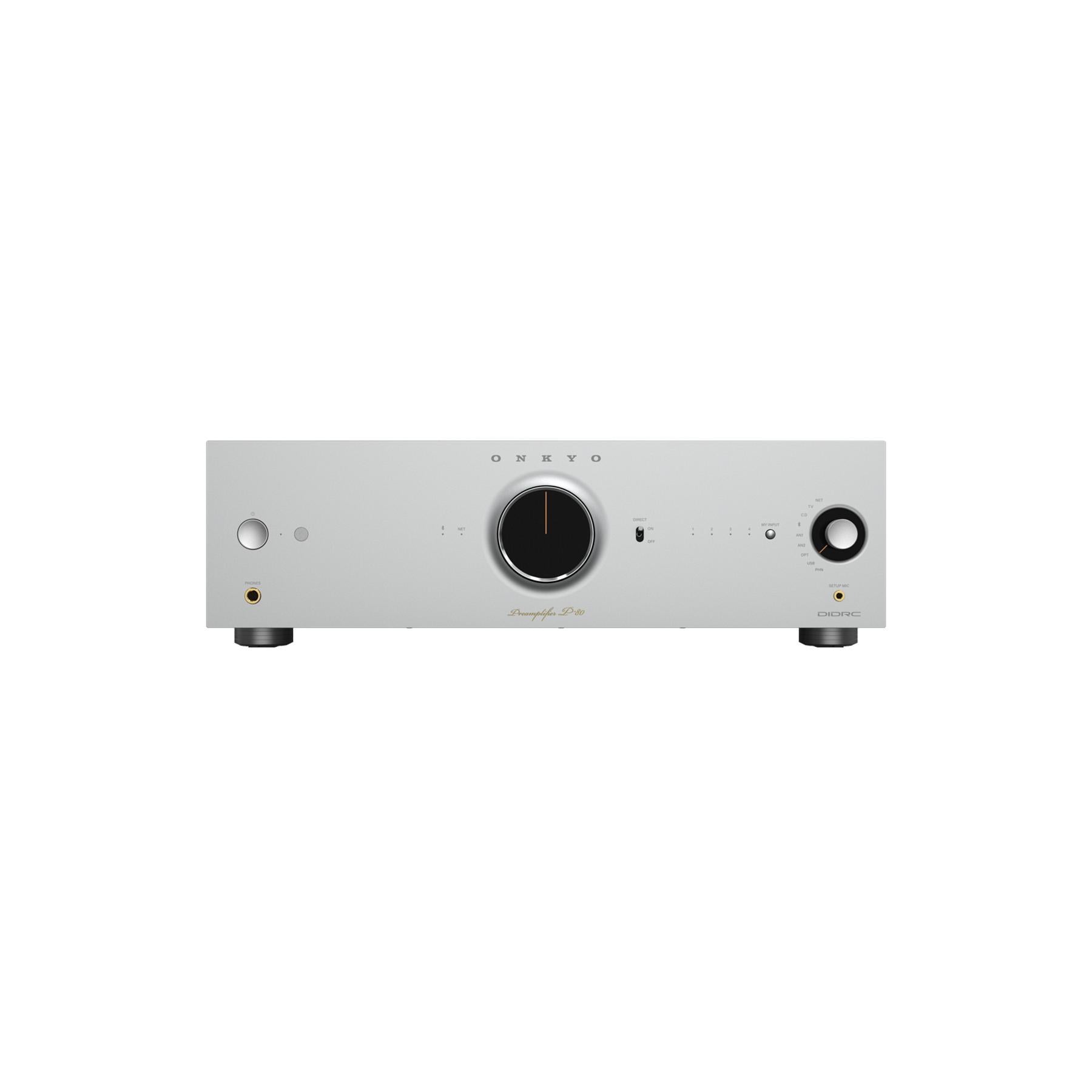 Experience reference-grade clarity with the Onkyo P-80 Network Preamplifier, a 2.2-channel preamp engineered for distortion-reduced, hi-fi sound. Its 32-bit/768 kHz DAC, MM/MC phono stage, balanced XLR/RCA pre-outs, and dual subwoofer outputs make it the perfect control center for serious listening. Stream with Spotify Connect, TIDAL, Qobuz, Amazon Music, AirPlay 2, Chromecast built-in, Bluetooth aptX HD, or run it Roon Ready over Wi-Fi/LAN. Built-in Dirac Live Room Correction and Fidelity IQ optimize your system for your room and your ears.
