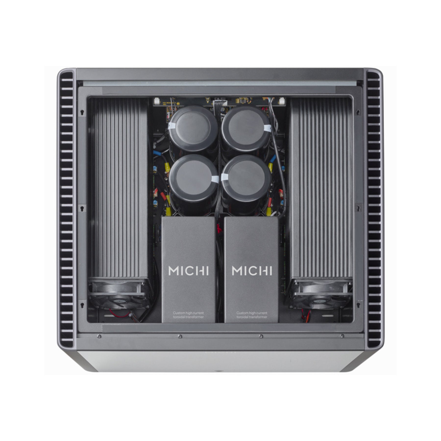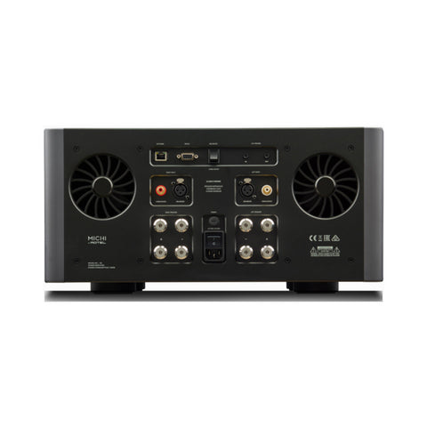 An elegant industrial design puts the finishing touch on this amplifier with a font panel color display and Michi exclusive custom high current 5-way rhodium plated binding posts. The included remote control provides easy setup and operation with RS232 and Ethernet connections supporting all popular control systems.