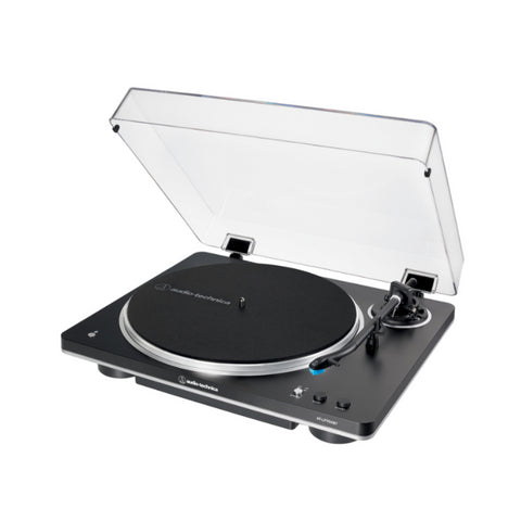 The Audio-Technica AT-LP70XBT blends analog warmth with wireless ease, making it the ideal turntable for new vinyl enthusiasts. This fully automatic, belt-drive turntable supports both 33-1/3 and 45 RPM records and connects seamlessly to Bluetooth® speakers and headphones—including those compatible with Qualcomm® aptX™ Adaptive for superior audio quality. A built-in switchable phono preamp ensures versatile connectivity, while the J-shaped tonearm comes pre-fitted with the high-performance AT-VM95C Dual Moving Magnet™ cartridge for clear, low-distortion sound. With its anti-resonance chassis, upgradeable stylus options, and simplified operation, the LP70XBT delivers high-fidelity vinyl playback with modern-day flexibility.