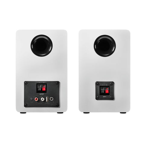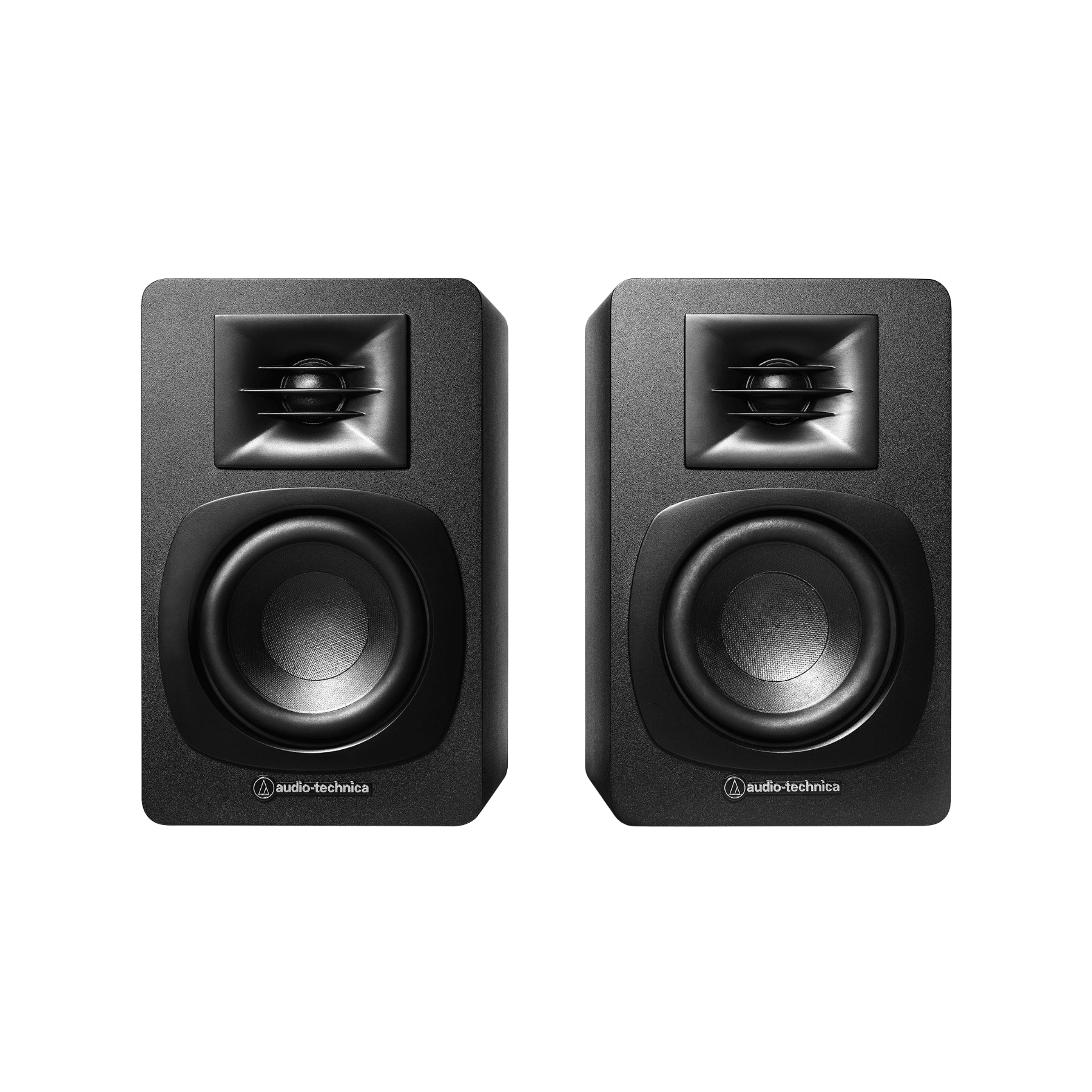 Bring immersive, full-range sound to your living space with the Audio-Technica AT-SP3X powered bookshelf speakers — the perfect blend of compact design and powerful performance. Engineered with 3" woofers and 1.1" tweeters tuned by a built-in DSP, these speakers deliver clear highs, rich mids, and deep lows whether you're streaming music or watching a movie. With support for both wired RCA connections and Bluetooth® 5.3 wireless streaming, these versatile speakers work seamlessly with turntables, computers, smartphones, and more. Easy to set up and operate, they include international plug adapters, a 6.6' speaker cable, and intuitive controls, making them a practical audio upgrade for any room.