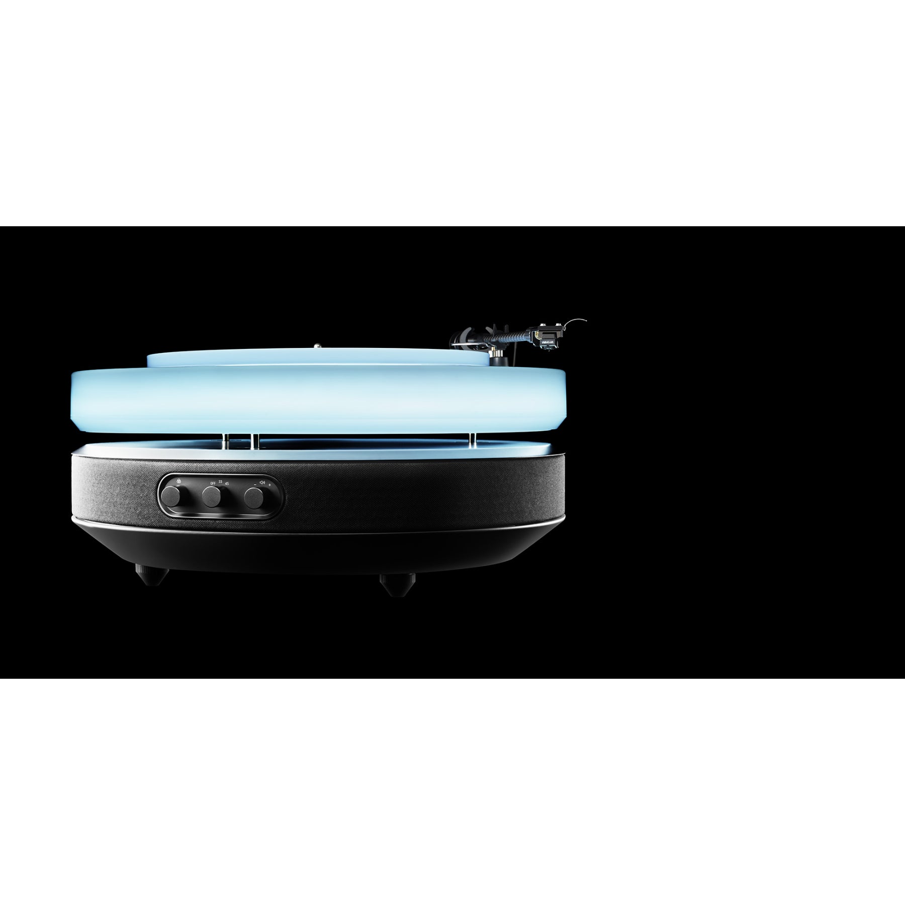 Floating Platter with Magnetic Repulsion: Minimizes vibration and enhances sound accuracy by suspending the platter midair with magnetic force.