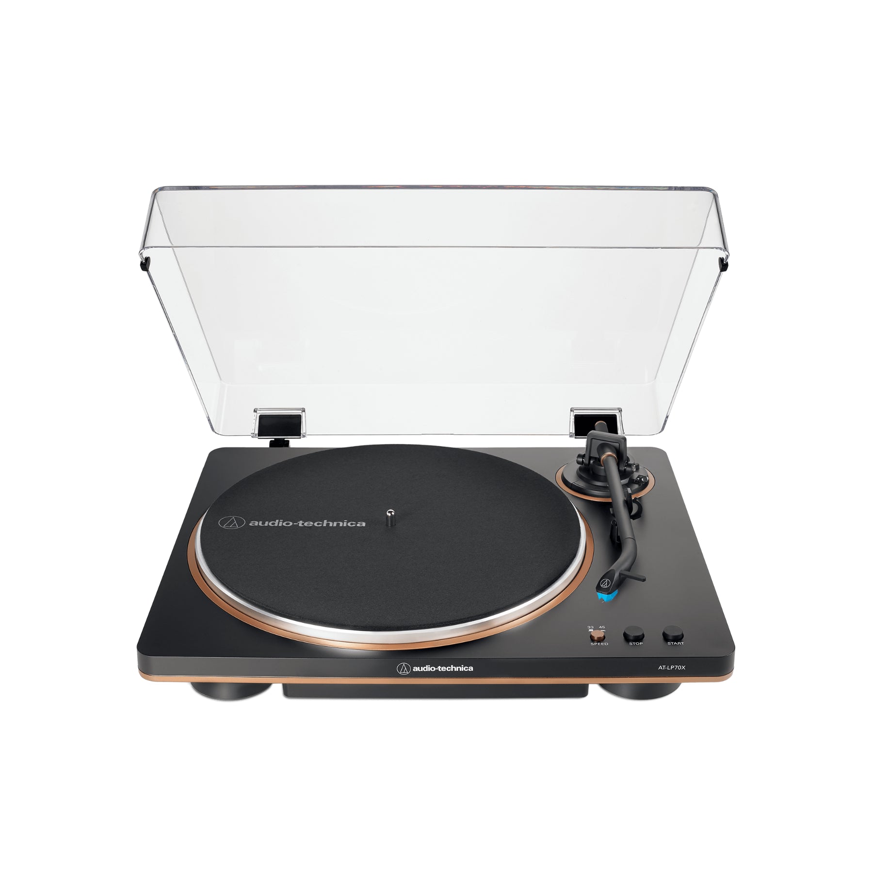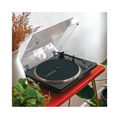 The AT-LP70X Fully Automatic Belt-Drive Turntable is an ideal starting point for those beginning their audiophile journey. It delivers a quality sound experience for record enthusiasts, from flipping through albums at the store to placing a record on the turntable, cueing the tonearm, and enjoying music as the artist intended. Combining the warmth of analog audio with user-friendly features, this turntable plays both 33-1/3 and 45 RPM records and includes a built-in switchable phono preamp for easy connection to a home stereo, powered speakers, or other components, with or without a dedicated phono input.