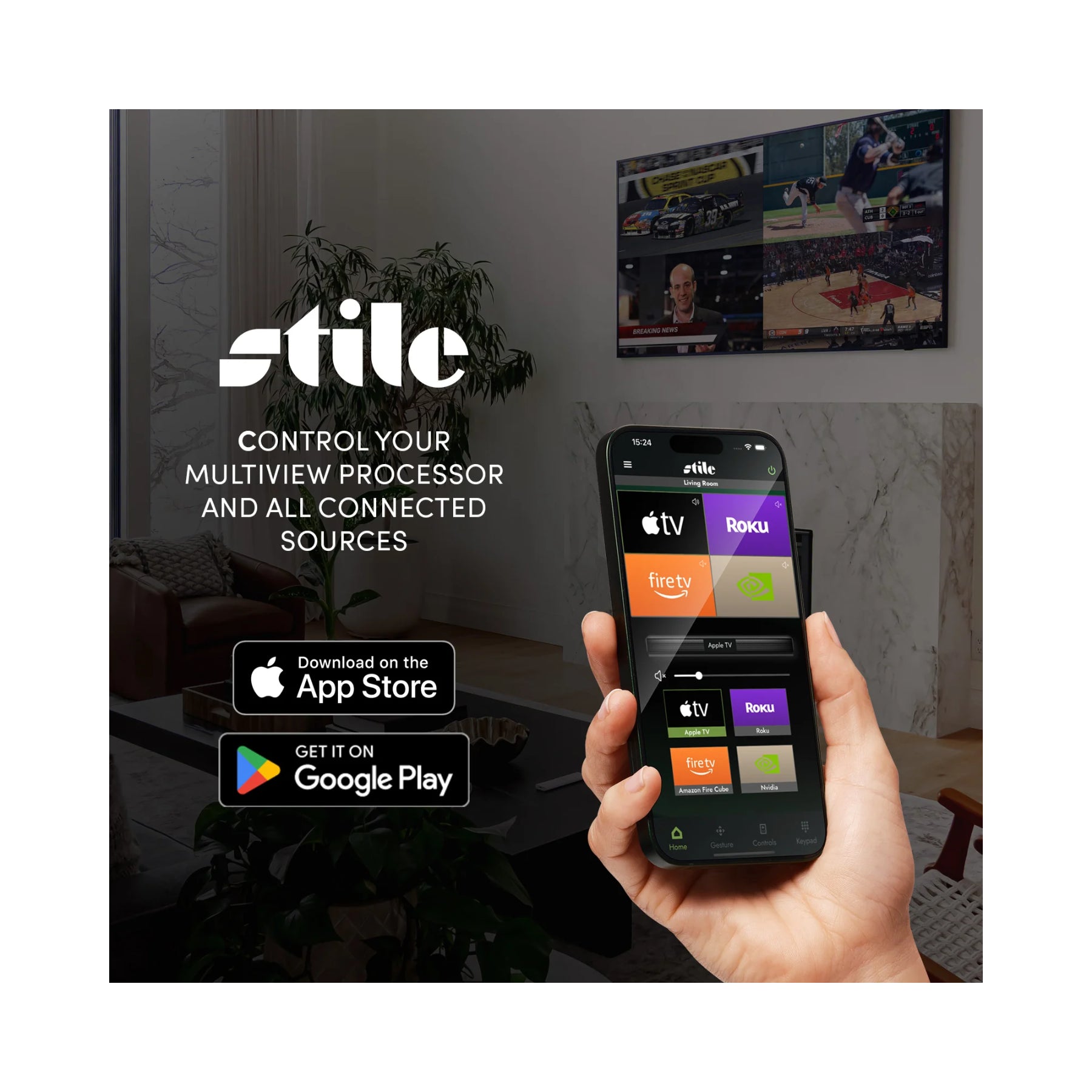 From a single HDMI 2.0 output, the AVPro Edge AC-MV-41 Multi-View video processor simultaneously displays as many as four separate sources on any size monitor, television, or projector. This versatile Multi-Viewer/Tiler may be used stand-alone, enabling four directly connected sources to be viewed as a composite image, video wall style, or independently full-size, with input switching controlled by the STILE app.