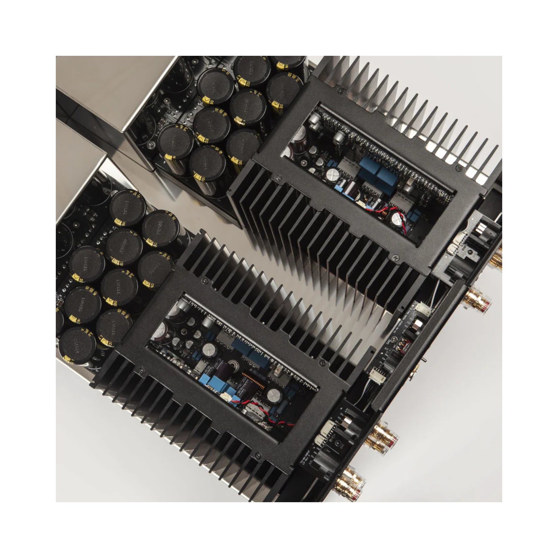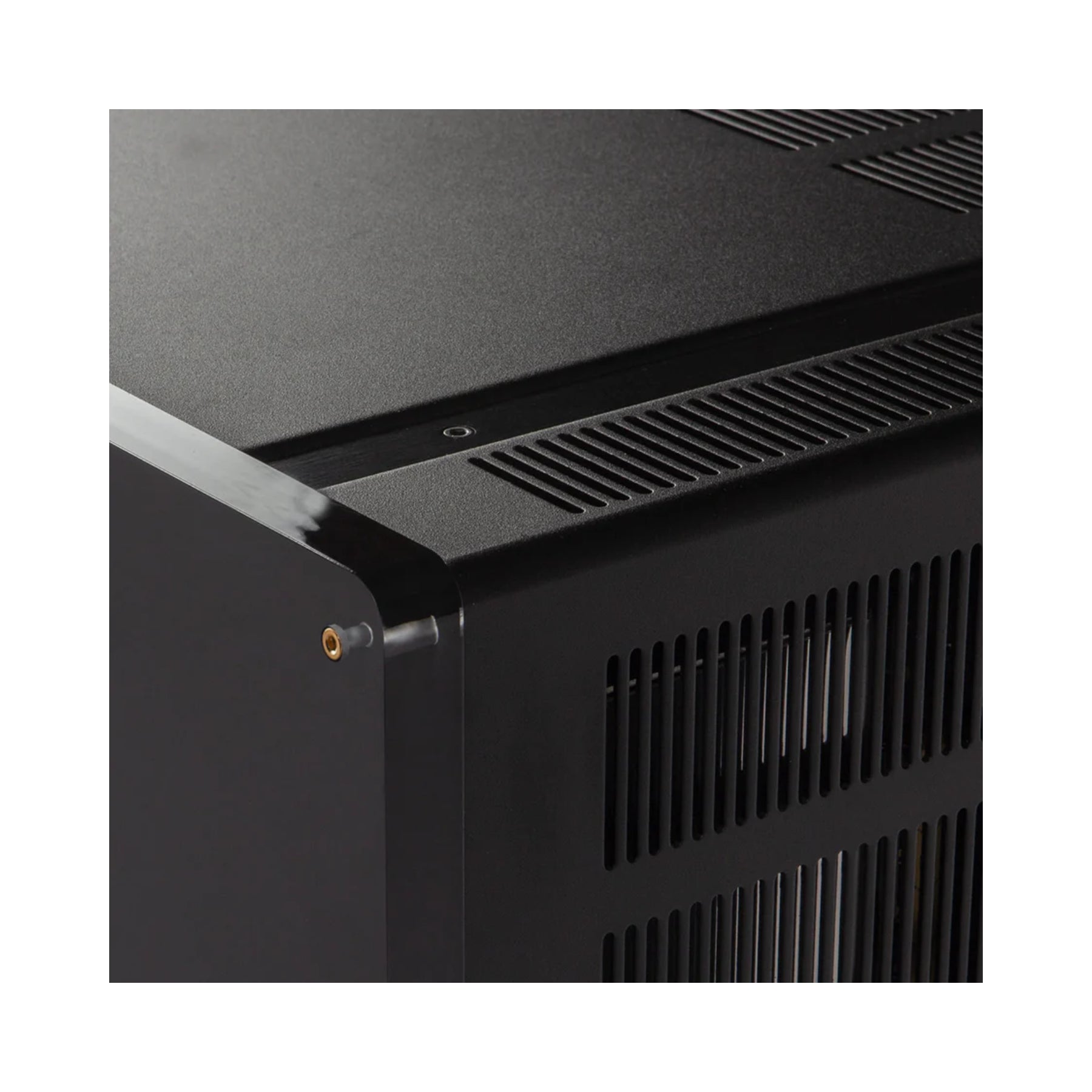 Design improvements include a new front plate with a 3D logo, a redesigned power button, and a fully re-engineered modular chassis. Two black brushed aluminum rods run across the top, not only reinforcing the chassis but also adding an elegant design element. The amplifier is housed in a luxurious matte finish, giving it the timeless Electrocompaniet aesthetic.