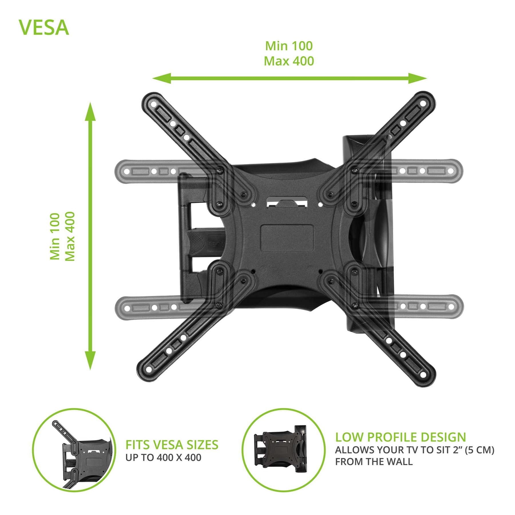• TV size & VESA range – 26 – 55 in; VESA up to 400×400 mm