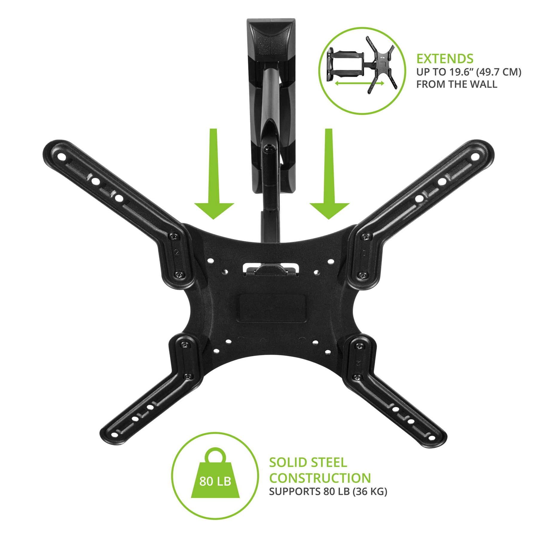 • Compact full‑motion design – Ideal for 26–55 in TVs, providing up to 19.6 inches (49.8 cm) of extension while occupying minimal wall space