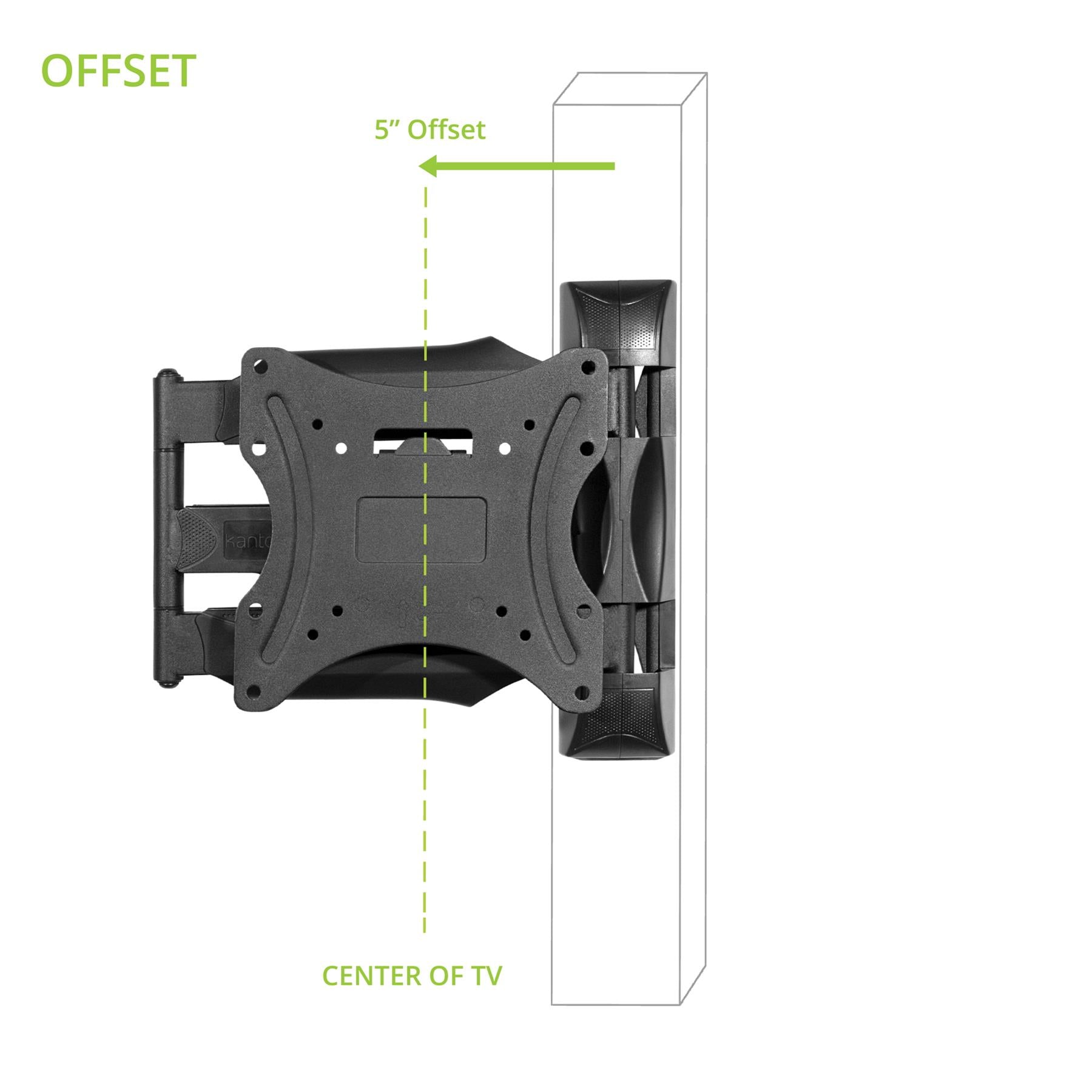 The Kanto M300 is a compact full‑motion TV mount designed for 26 to 55 inch televisions. Its articulating extension arm extends up to 19.6 inches from the wall and supports displays weighing up to 80 pounds. This allows you to position your TV perfectly in corners, on columns or angled seating areas while minimizing wall space usage.