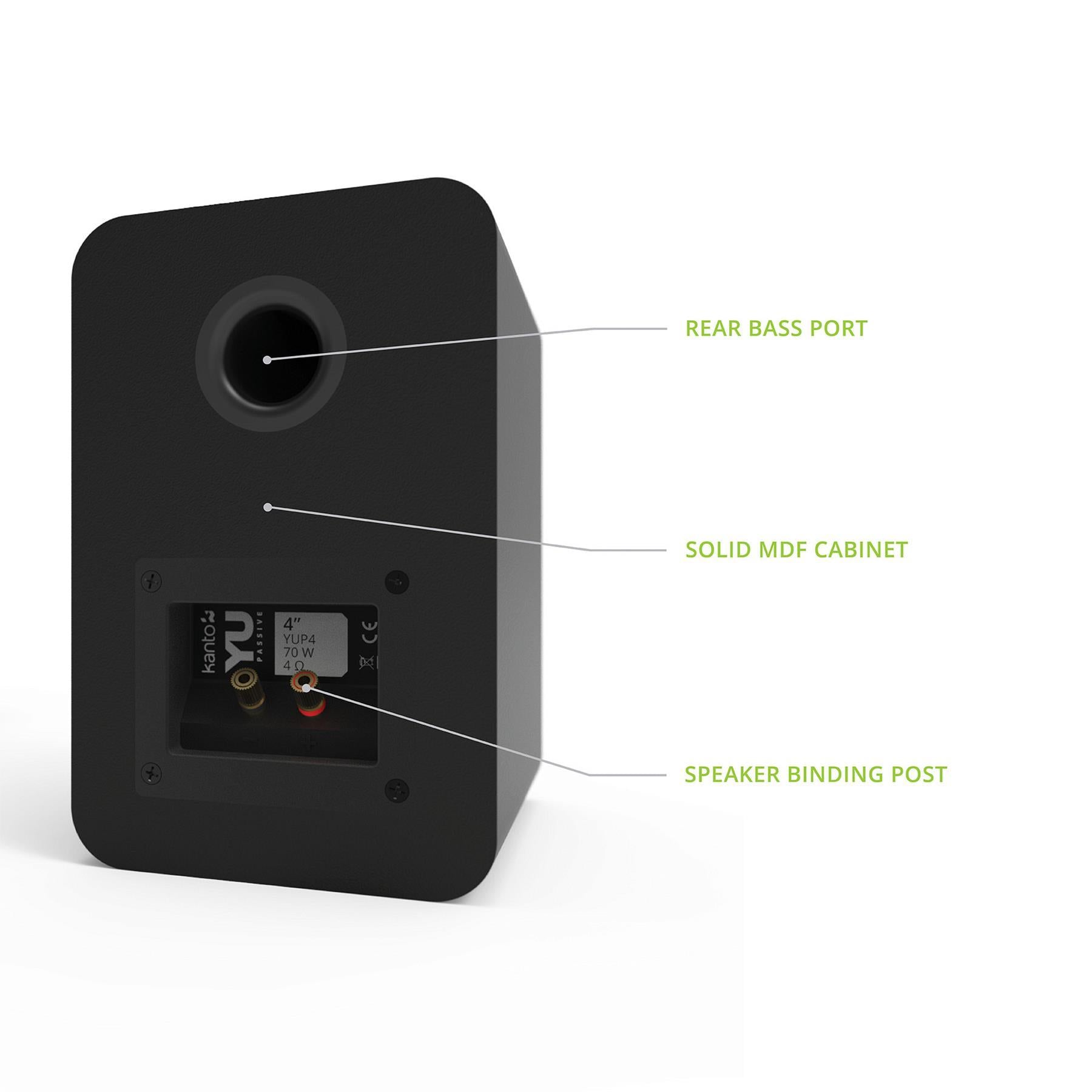 Upgrade your sound system with the Kanto YUP4 Passive Bookshelf Speakers, featuring 4” Kevlar® woofers and 1” silk dome tweeters for balanced, high-fidelity audio. Ideal for use with any amplifier, these passive speakers suit desktop, stereo, or home theater setups. Their threaded mounting holes offer secure compatibility with Kanto stands for optimal performance. Compact yet powerful, the YUP4 delivers exceptional clarity and versatility in any space.