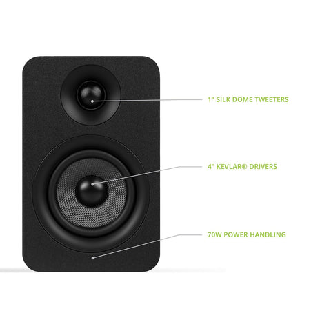 Rigid and lightweight, the 4” Kevlar drivers deliver deep, distortion-free bass for a more accurate low-end reproduction, essential for both music and movie audio.