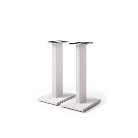 The KEF SQ1 Floor Stand is a rigid, stable platform designed for Q Series bookshelf speakers. It enhances sound quality with an aluminum construction and optional inert filler, available in two elegant finishes.