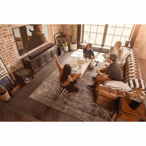 Up-firing and front-firing full-range drivers work together to project overhead effects and lateral ambience, enveloping you in a hemisphere of sound that traditional surrounds can’t match.