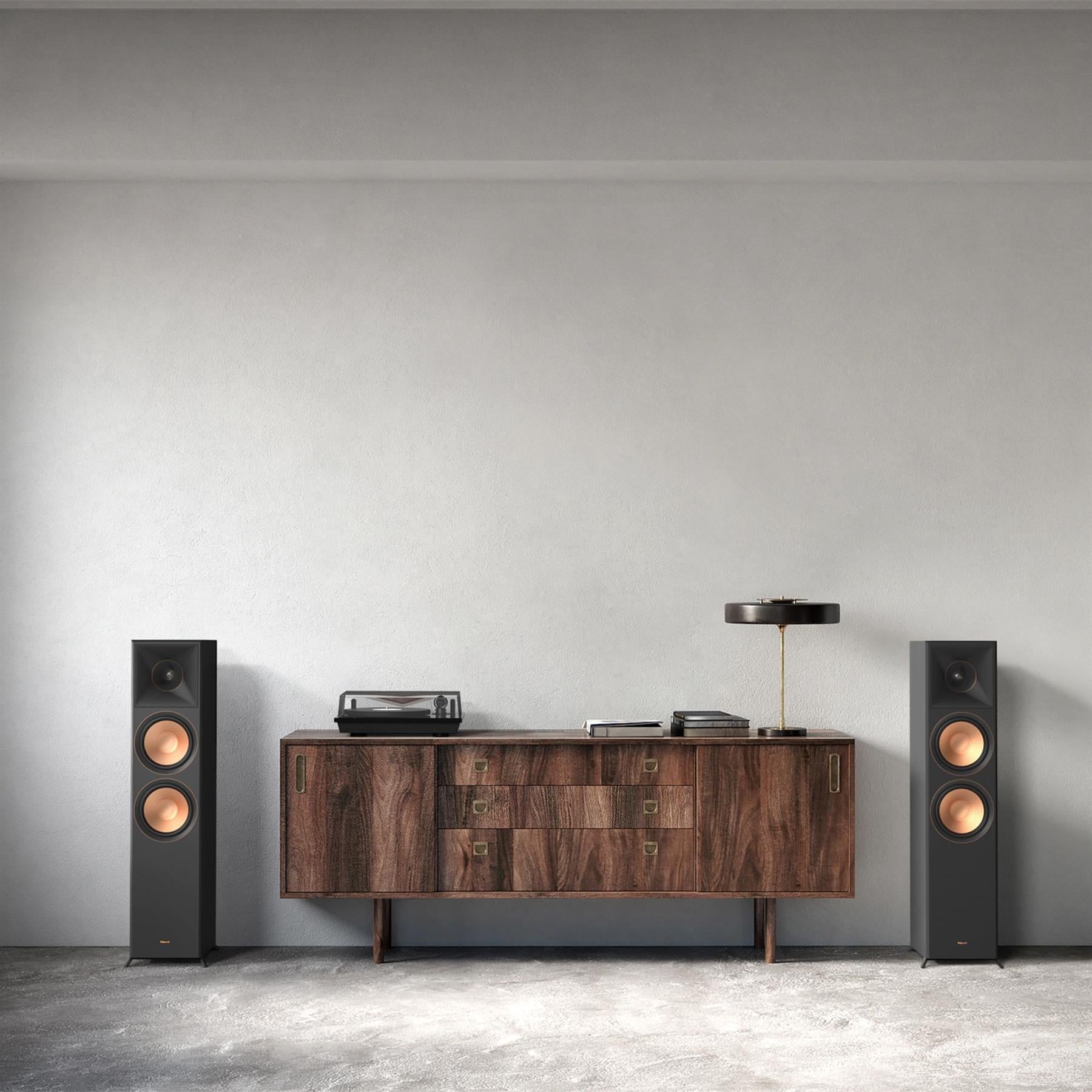 The furniture‑grade, scratch‑resistant vinyl finishes (Ebony or Walnut) combined with satin‑painted baffles and magnetic grilles allow for a look that matches your room décor while preserving functionality. Removable magnetic grilles let you show off the drivers.