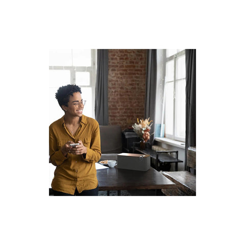 The Klipsch The Three Plus is a premium Bluetooth speaker that marries vintage aesthetics with cutting-edge audio technology. Designed for audiophiles, it features a bi-amplified 2.1 stereo system with two 2-1/4" full-range drivers and a 5-1/4" long-throw woofer, paired with dual opposing passive radiators for deep, distortion-free bass. Its real-wood veneer cabinet and mid-century modern design make it a stylish centerpiece for any room.