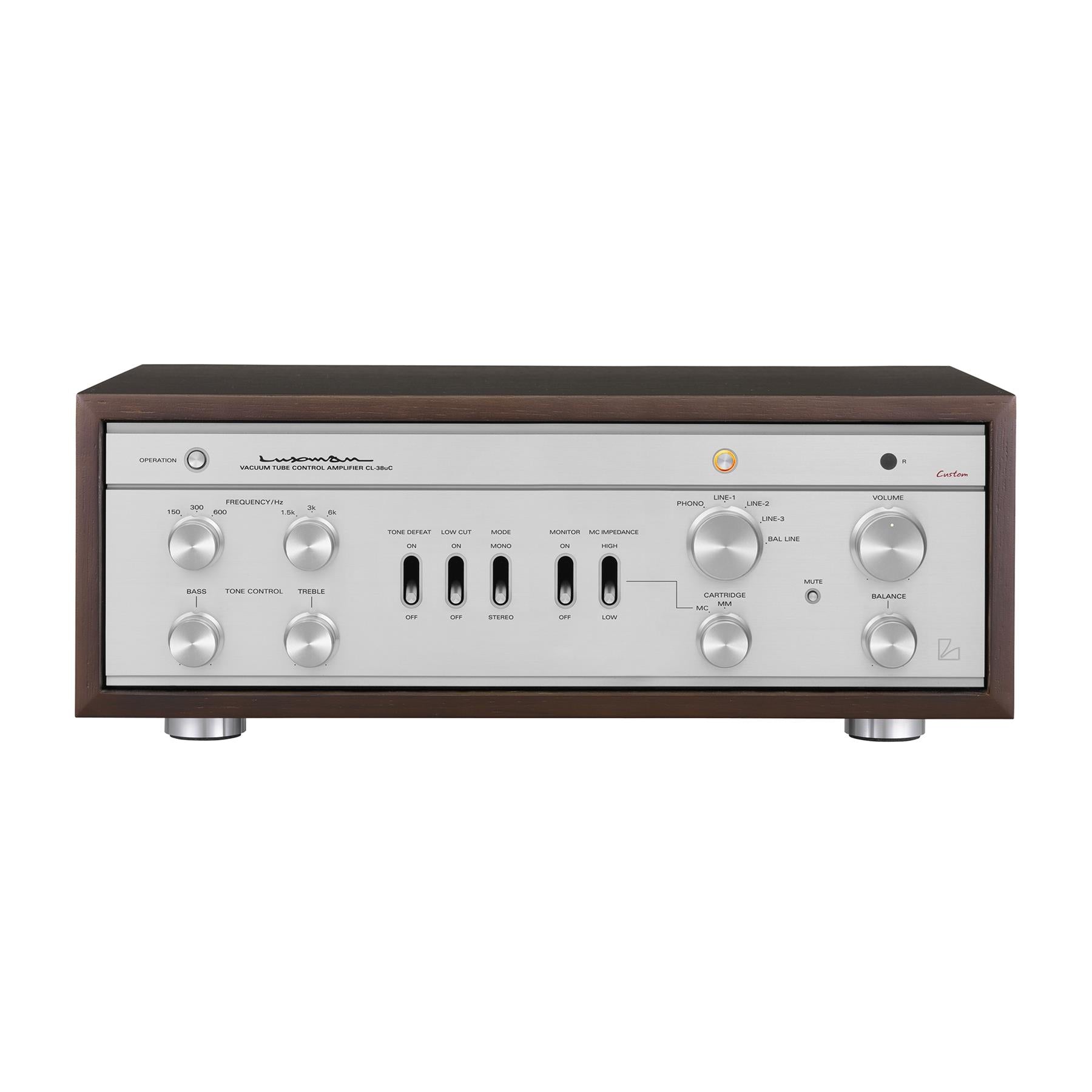 The Luxman CL-38uC is a beautifully crafted vacuum tube control amplifier (tube preamplifier) designed to deliver rich, natural musicality with modern connectivity and precision. Built around SRPP (Shunt Regulated Push Pull) circuitry in all stages, it provides a clean, stable signal path with low distortion and a refined, tube-forward presentation that stays detailed and accurate. A genuine built-in phono equalizer supports both MM and MC cartridges, with MC-low and MC-high gain/impedance options using independent MC transformers and a convenient selector lever for quick matching to your cartridge. To tailor your system exactly to your room and taste, the CL-38uC includes tone controls with selectable turnover frequencies, plus a low-cut filter for improved control of rumble and unwanted low-frequency energy. Finished with Luxman’s classic styling and a traditional wooden case, this control amp also adds balanced inputs (transformer-equipped) and includes a compact aluminum remote for smooth volume control from your listening seat.