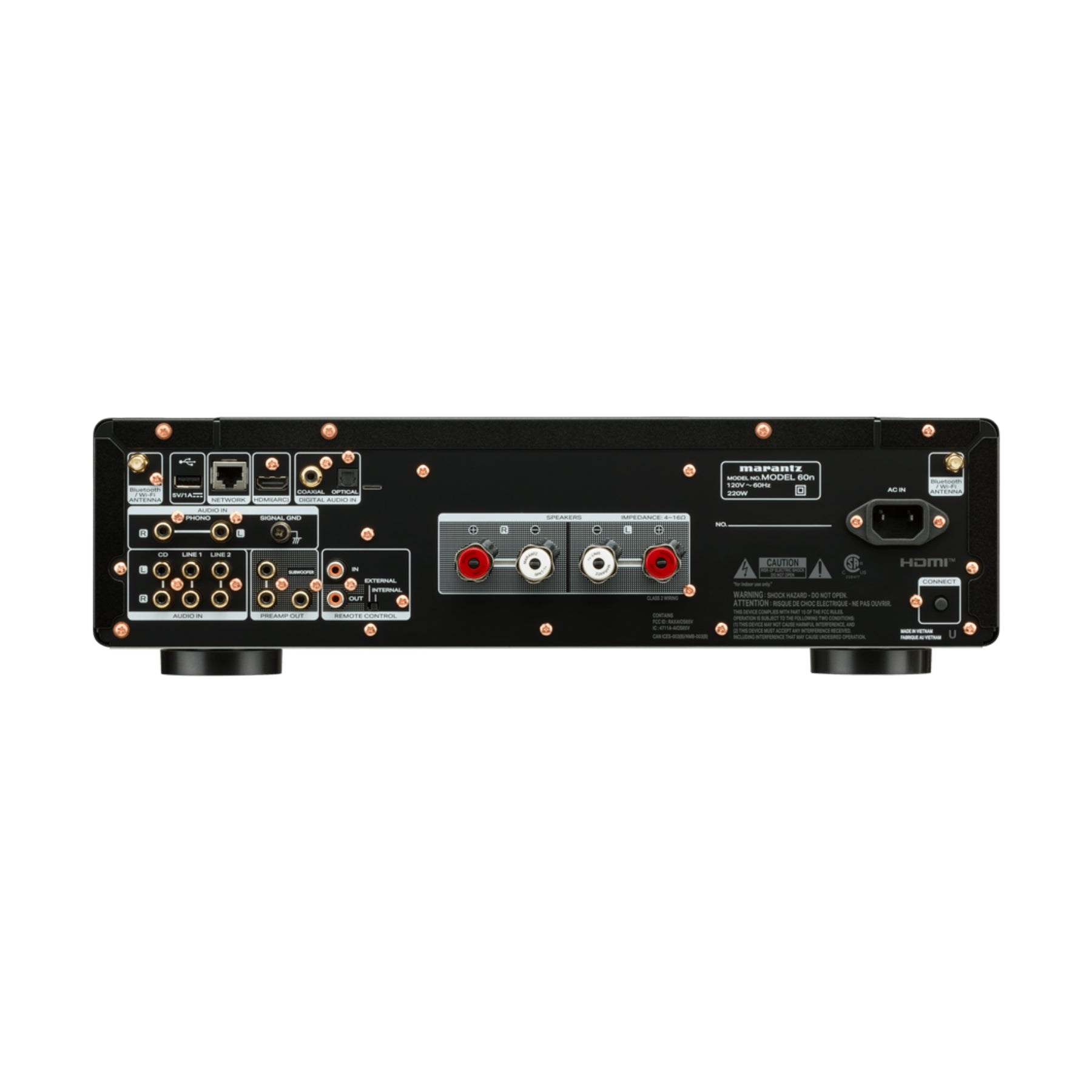 The Marantz Model 60n is a high-performance network integrated amplifier featuring 60W per channel, HEOS Built-in for hi-res music streaming, and HDMI ARC for seamless TV integration. With Marantz’s HDAM circuitry, CD and phono inputs, and full-range/subwoofer pre-outs, it delivers rich, detailed audio ideal for audiophiles. Compatible with TIDAL, Pandora, Amazon Music HD, and more, the Model 60n is a versatile choice for any hi-fi setup. Available in Black and Silver Gold.