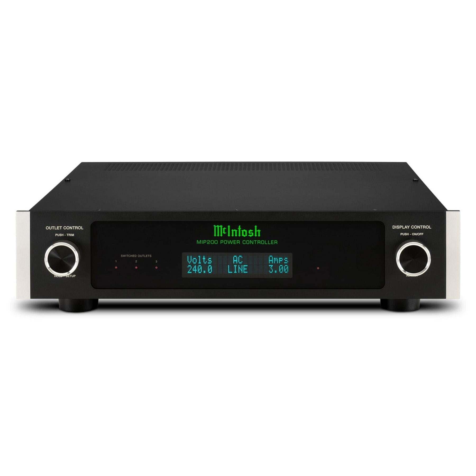 The McIntosh MIP200 Power Controller is a sophisticated solution for protecting your audio investment from unexpected electrical issues. It offers AC power line surge protection, electromagnetic interference (EMI) filtering, and programmable over/under voltage protection to ensure your premium audio system remains unscathed by power disturbances. With global power standard compatibility, this 2U rack-mounted unit delivers superior protection and precision control, seamlessly integrating into custom install home theater or whole-home audio systems. The front panel AC line monitor provides real-time data on voltage, current draw, and total apparent power, while the iconic McIntosh black glass design adds luxury to any setup.