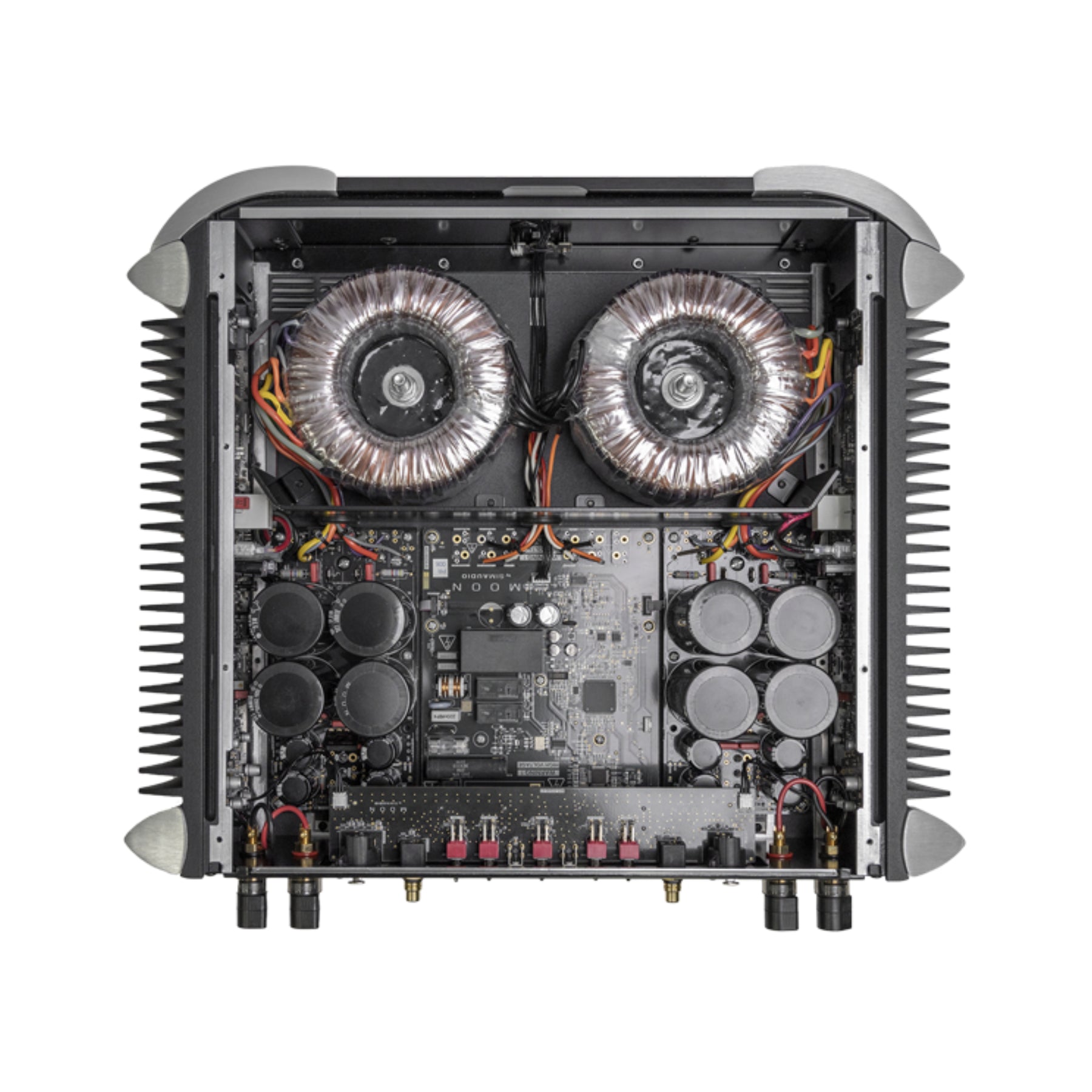 is a refreshing departure from annual iterations and a testament to the brand's commitment to quality with a generous ten-year guarantee. This entirely new series of products, starting with the MOON 761, showcases their dedication to excellence. The Moon 761 power amplifier excels at its singular task, effortlessly transmitting delicate audio signals from a preamplifier to speakers with unrivaled transparency and finesse. With a robust power output of 200W @ 8 ohms (which doubles to 400W at 4 ohms) and the ability to switch to mono mode for a staggering 600W @ 8 ohms, the MOON 761 is a powerhouse that commands attention.