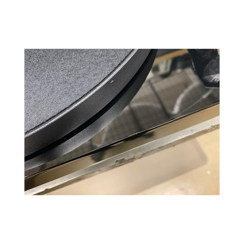 This unit has been fully tested and inspected by our team of audio/video experts. The only found issue is a small dent on the front edge of the base. The turntable was otherwise found to be sonically flawless and in as-new condition. It comes with its original box, all accessories and a full manufacturer warranty.