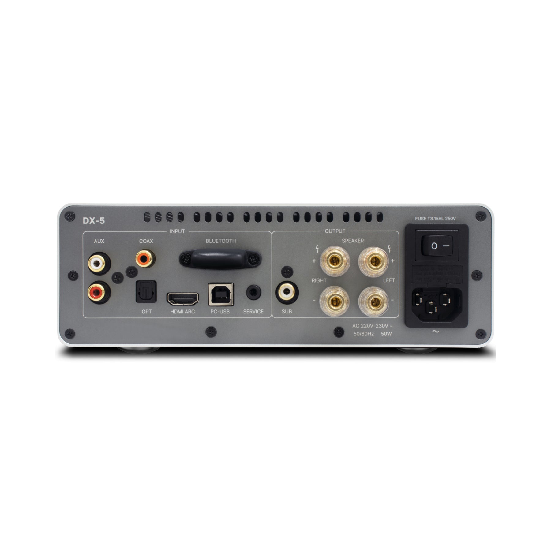 The Rotel DX-5 is the ultimate Personal Audio Integrated Amplifier blending cutting-edge technologies, versatile connectivity, packaged in a sleek, elegant, industrial design. The DX-5 delivers 25 watts @ 8 ohms (33 watts @ 4 ohms) of classic Rotel Class AB amplification in an ultra size-efficient chassis.