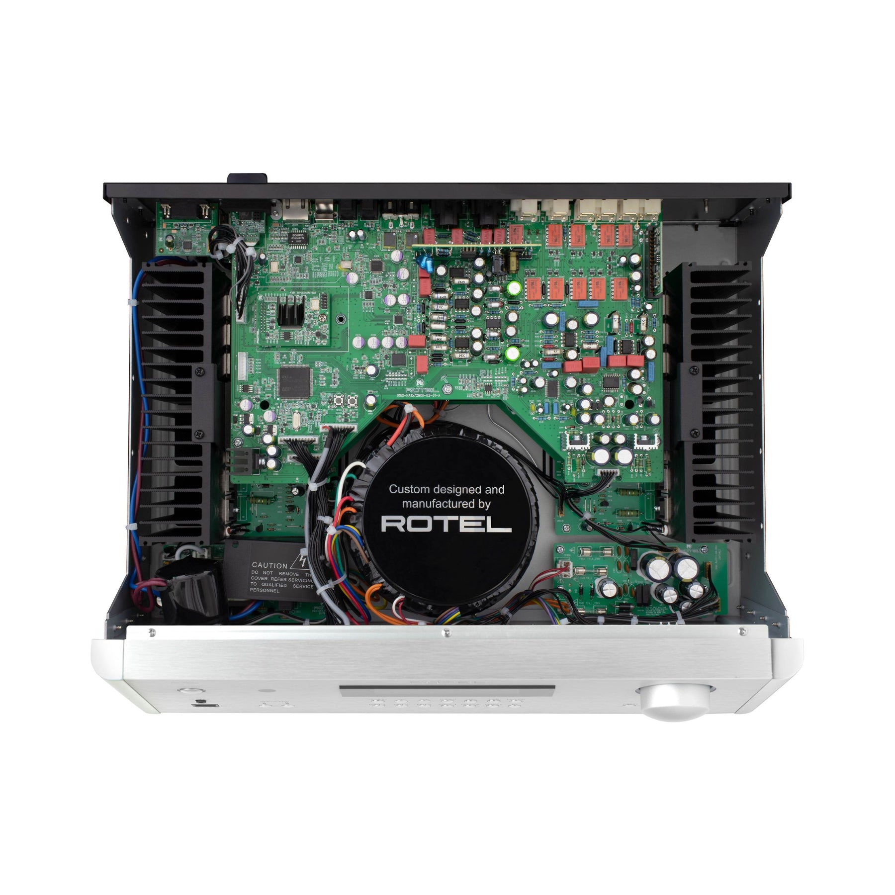 As typical of Rotel amplifiers, the RA-1572MKII utilizes anin-house manufactured oversized toroidal transformer. Thetoroidal transformer’s shape helps prevent stray radiationpatterns from corrupting audio signals as they pass throughadjacent circuits. The transformer feeds a bank of 4 low ESR,high efficiency, T-Network slit-foil storage capacitors for deep,controlled bass energy.