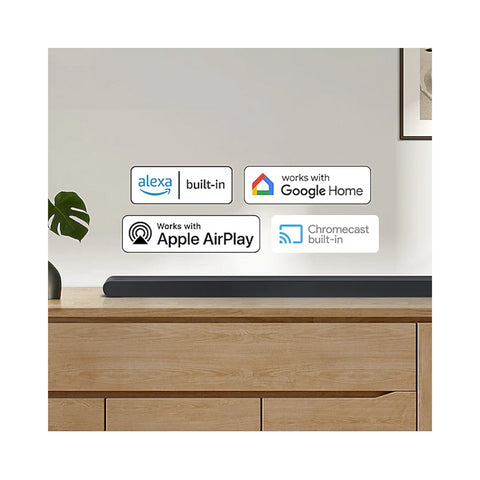 Experience breathtaking audio in a remarkably slim form with the Samsung Ultra Slim 3.1ch Wireless Dolby Atmos Soundbar (HW-S700D). Crafted for premium home entertainment, this soundbar delivers immersive Dolby Atmos sound without the need for upward-firing speakers, thanks to Samsung's advanced technology. Designed with elegance in mind, its ultra-slim profile fits beautifully into any space, complementing your TV and décor. Pair it seamlessly with Samsung TVs through Q-Symphony, enhancing the audio experience by synchronizing sound from both devices for a richer, fuller soundstage.