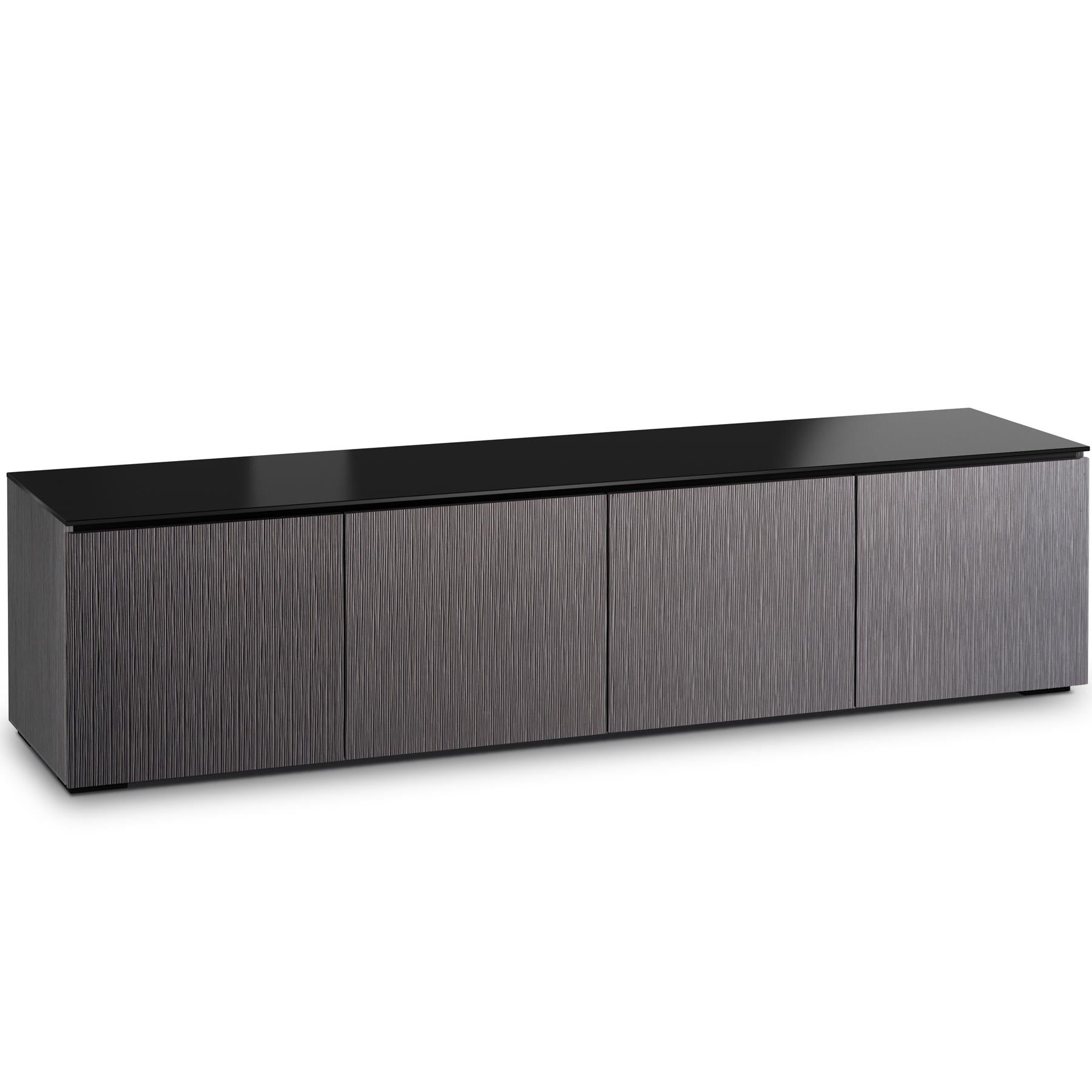 The light look and feel of tall grasses is finely set in a vertical textured pattern. Alpi gray oak with black glass top and black feet work in unison, creating the cabinet's hi-tech facade.