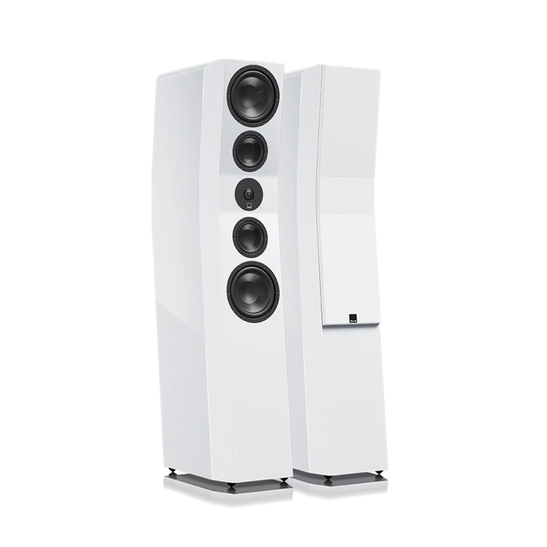 SVS Ultra Evolution Titan is a reference-grade 3-way floorstanding tower speaker built to deliver true full-range impact with audiophile refinement. Its acoustically centered, time-aligned cabinet architecture helps align driver output so transients lock in, imaging snaps into focus, and the soundstage stays coherent across a wide listening area. A 1" diamond coated aluminum dome tweeter extends effortlessly into ultra-high frequencies for airy detail and low distortion, while dual 4.5" glass-fiber composite midrange drivers preserve tonal accuracy and dynamic nuance through vocals and instruments. For bass, Titan uses a force-balanced array with quad 6.5" glass-fiber composite woofers and dual wide-flared rear-firing ports to produce deep, evenly distributed low-frequency authority with reduced mechanical coloration. Premium crossover parts and carefully optimized cabinet construction keep everything clean at both low and high volumes—making the Ultra Evolution Titan an ideal anchor speaker for high-end two-channel systems and immersive home theater rigs alike. The SVS Ultra Evolution Titan Floorstnading Speakers are part of ListenUp's SVS Floor Standing Tower Speakers Collection.