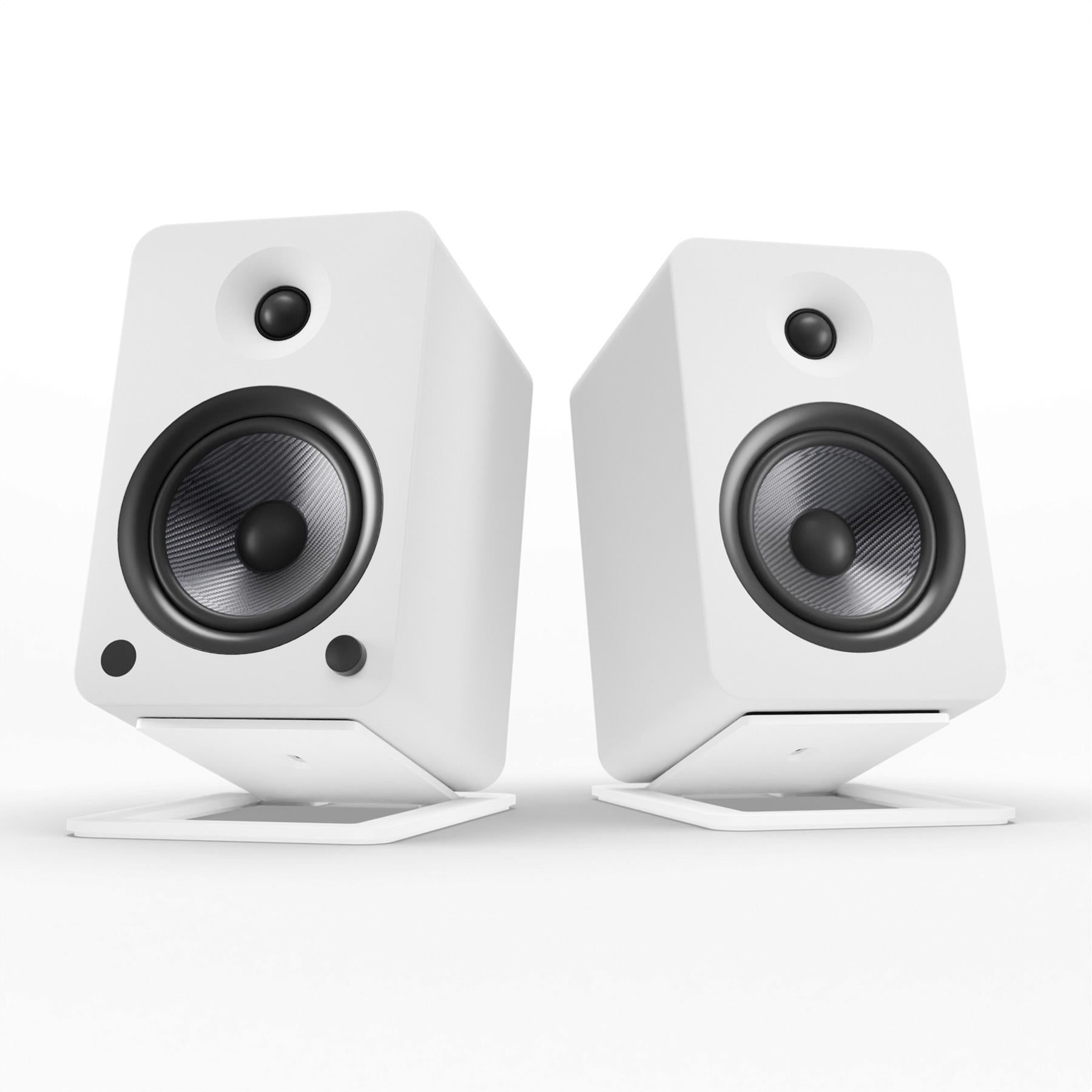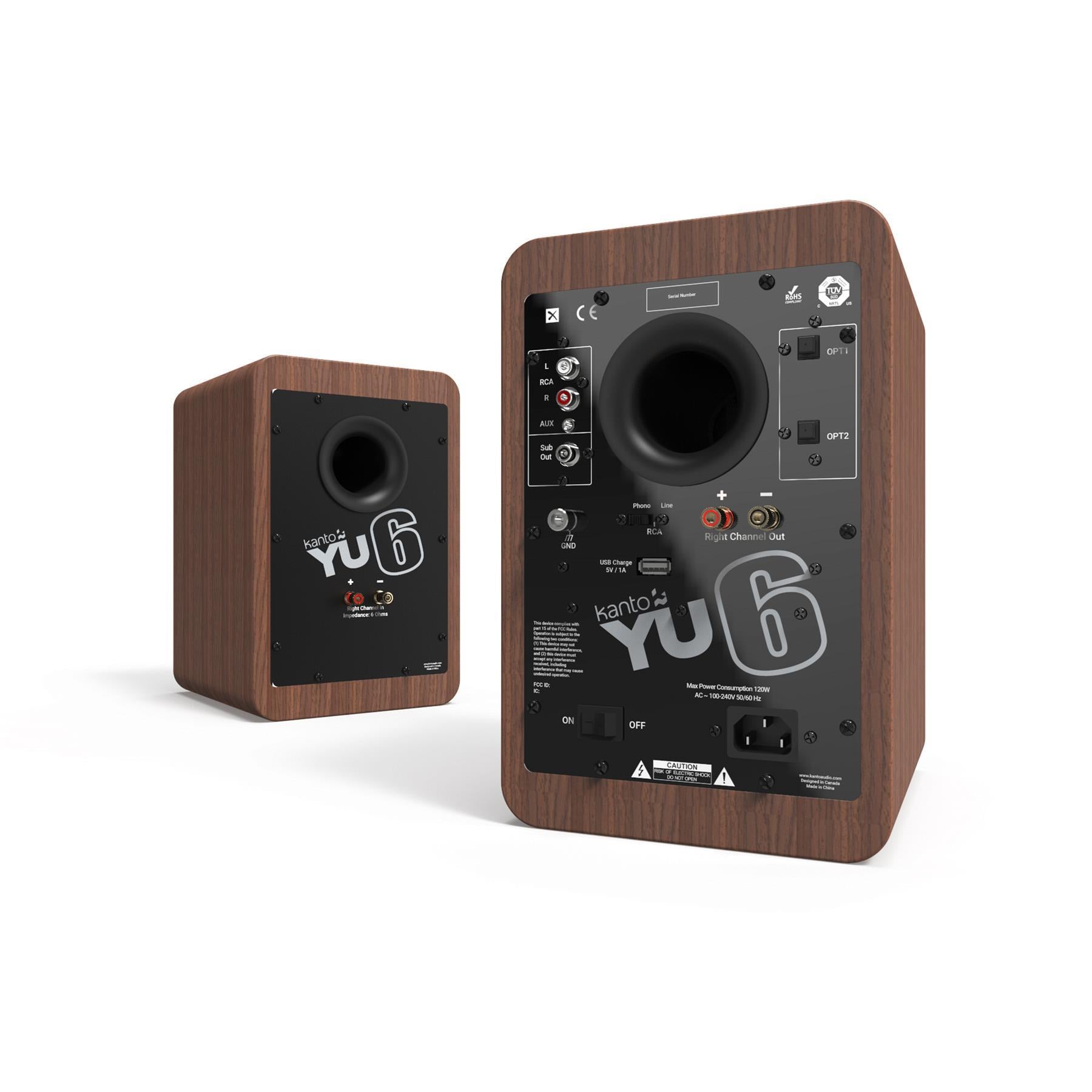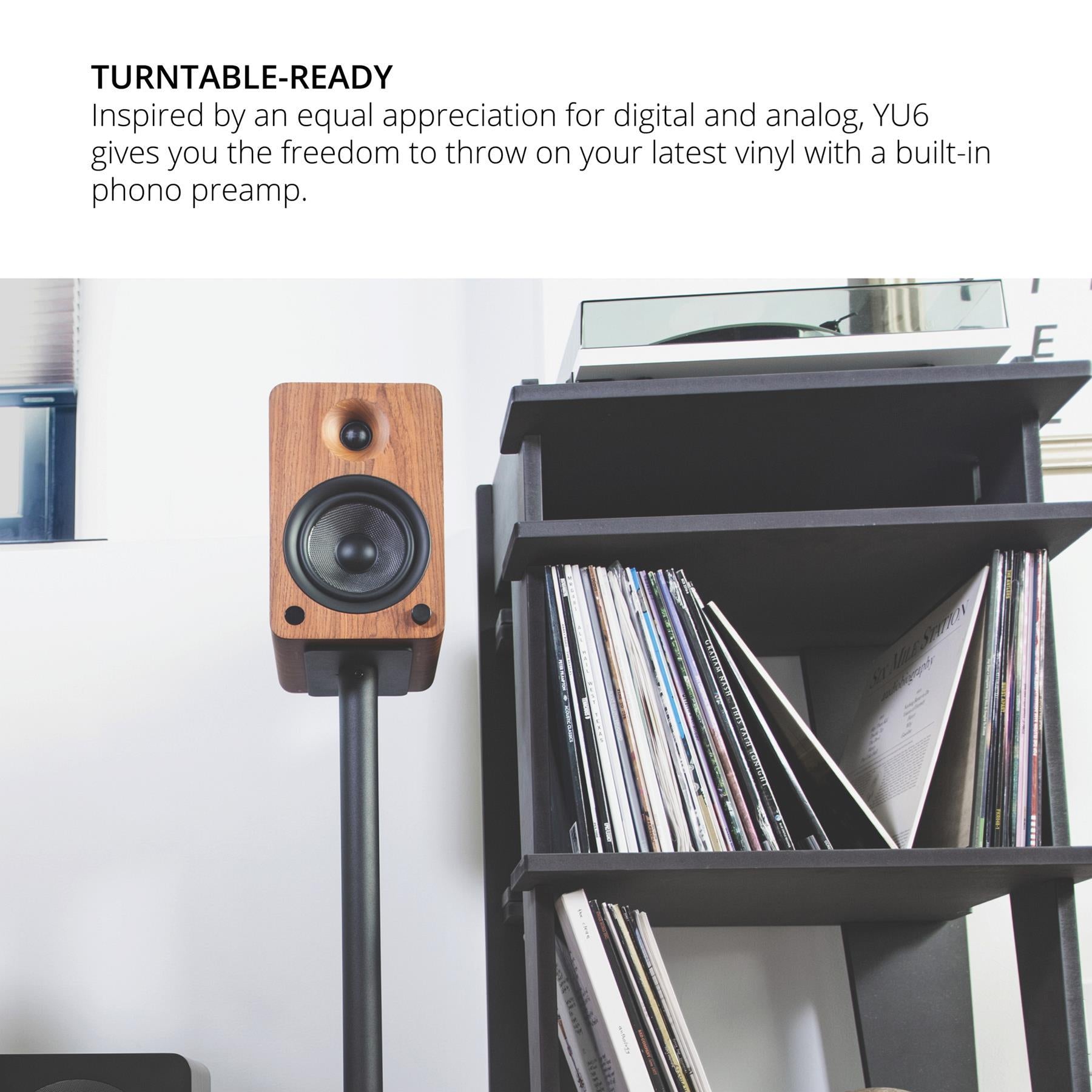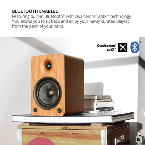 The Kanto YU6 is available in multiple finishes, including Matte Black, Matte White, and Walnut, allowing you to choose the style that best fits your decor.
